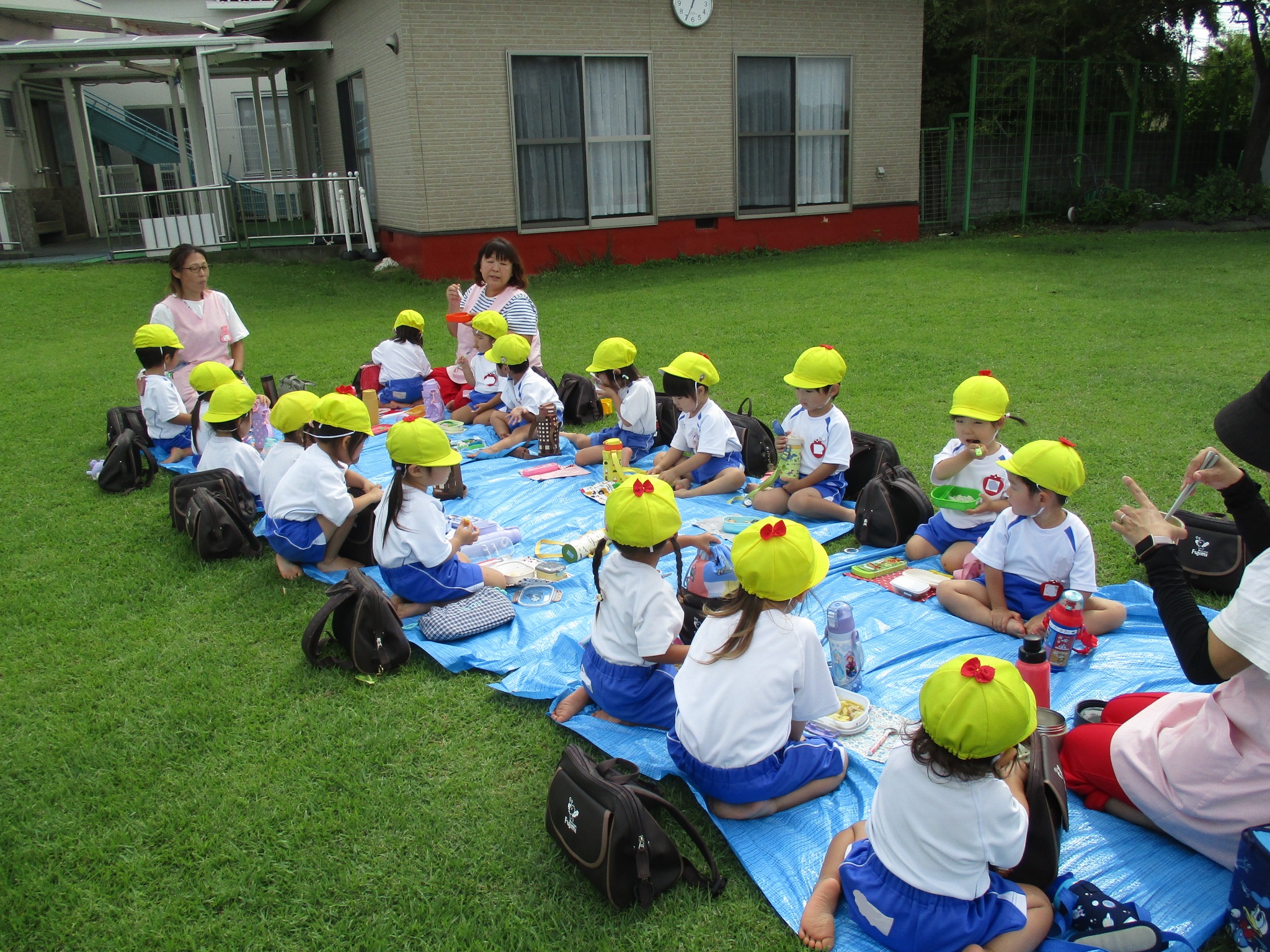 〈芝生でみんなでお弁当を食べたよ♡〉