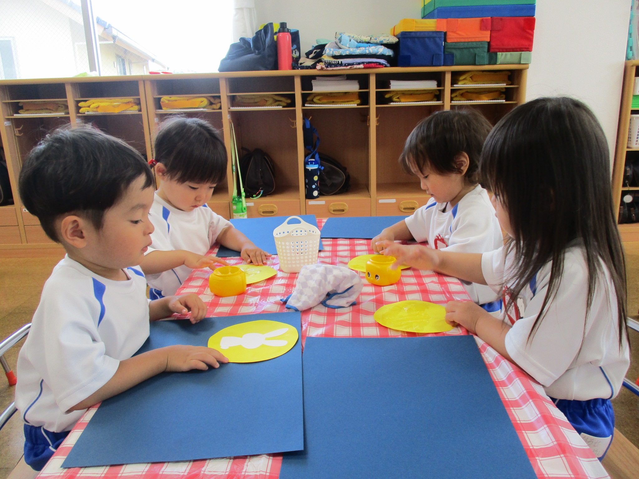 〈お月見製作 のりを上手に伸ばせたよ!〉