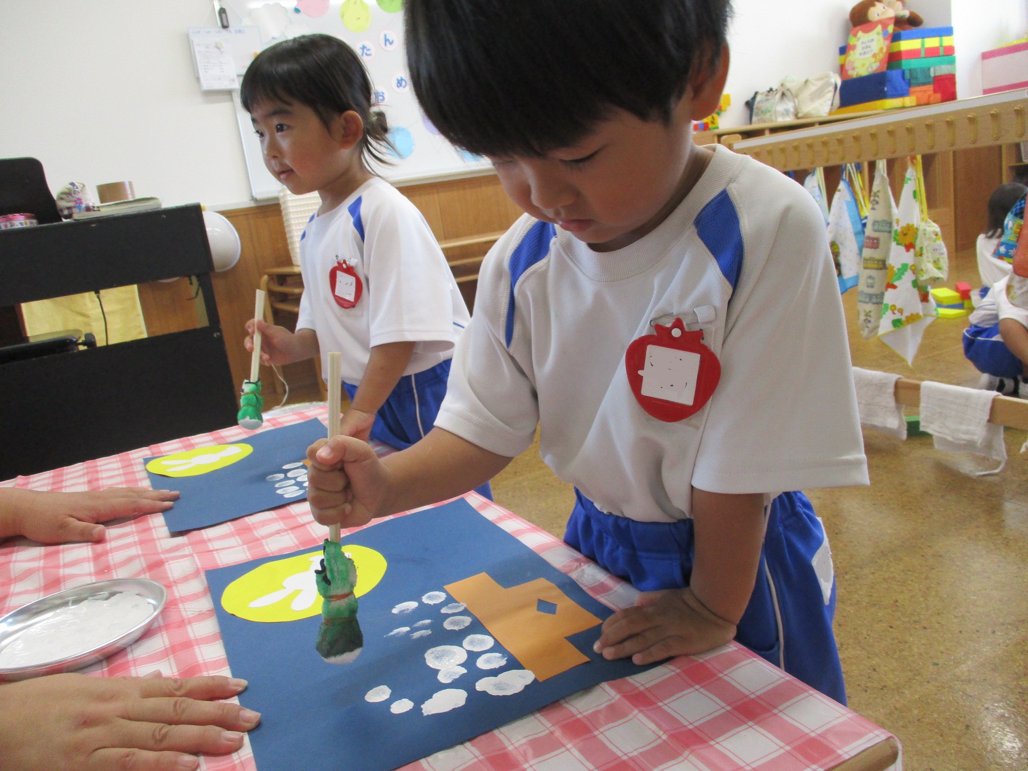〈お月見製作 お団子のスタンプ♪たくさんのせちゃおう♪〉