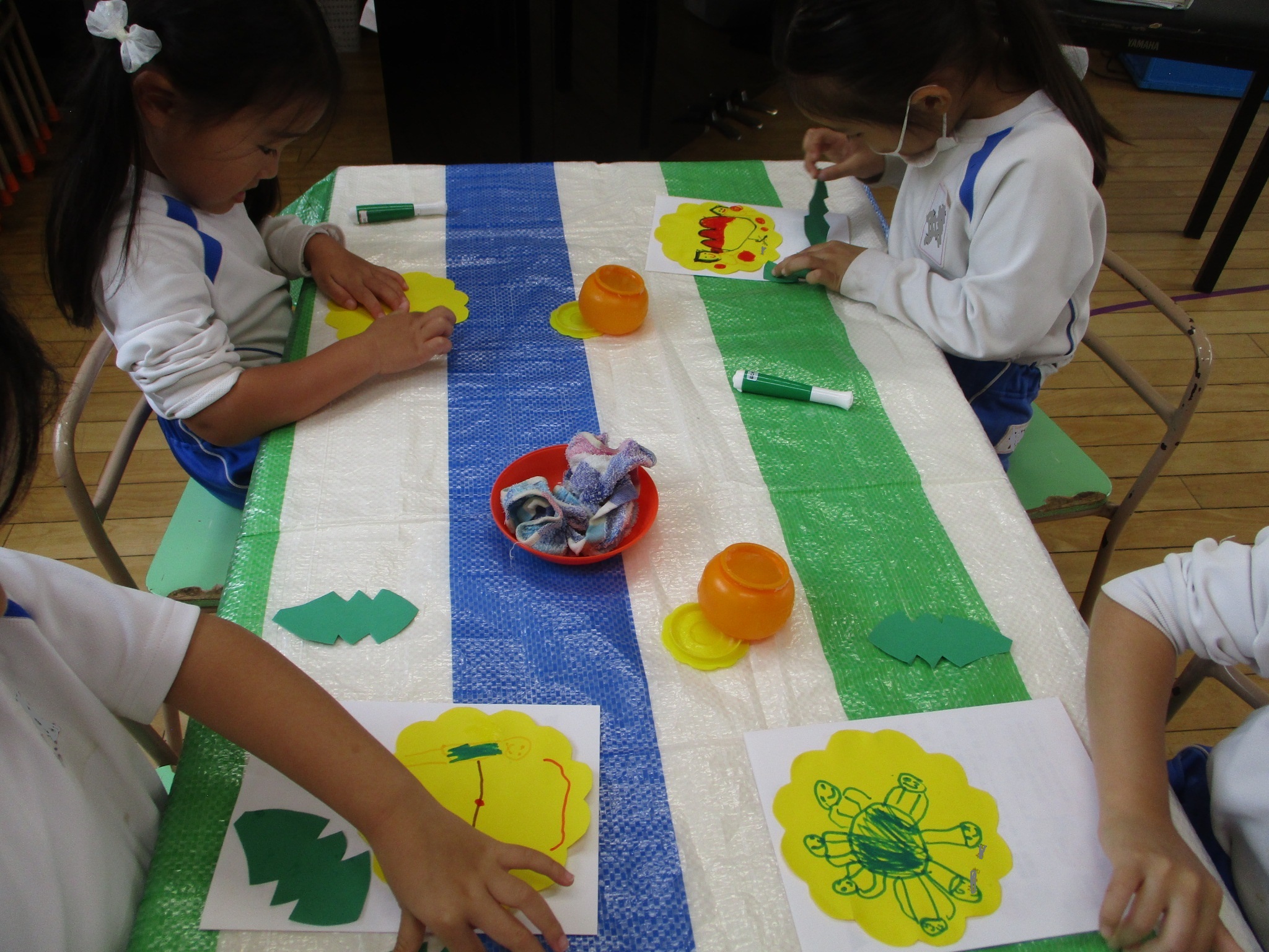 プログラム製作の仕上げでは一生懸命描いた好きな競技の絵とパパやママにメッセージも添えて素敵なプログラムが完成しました♡