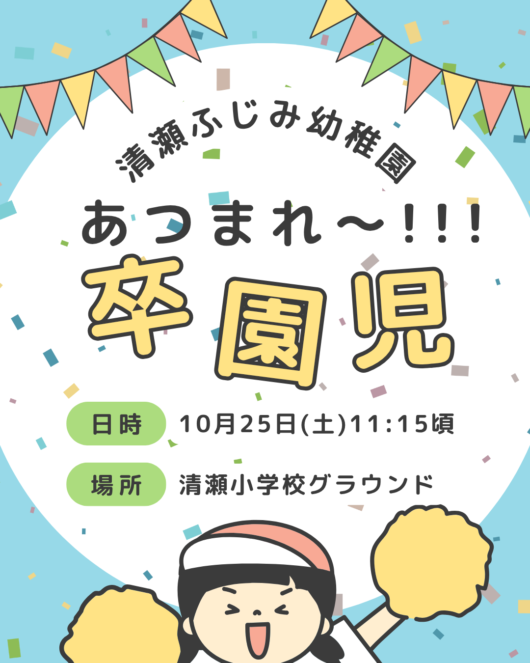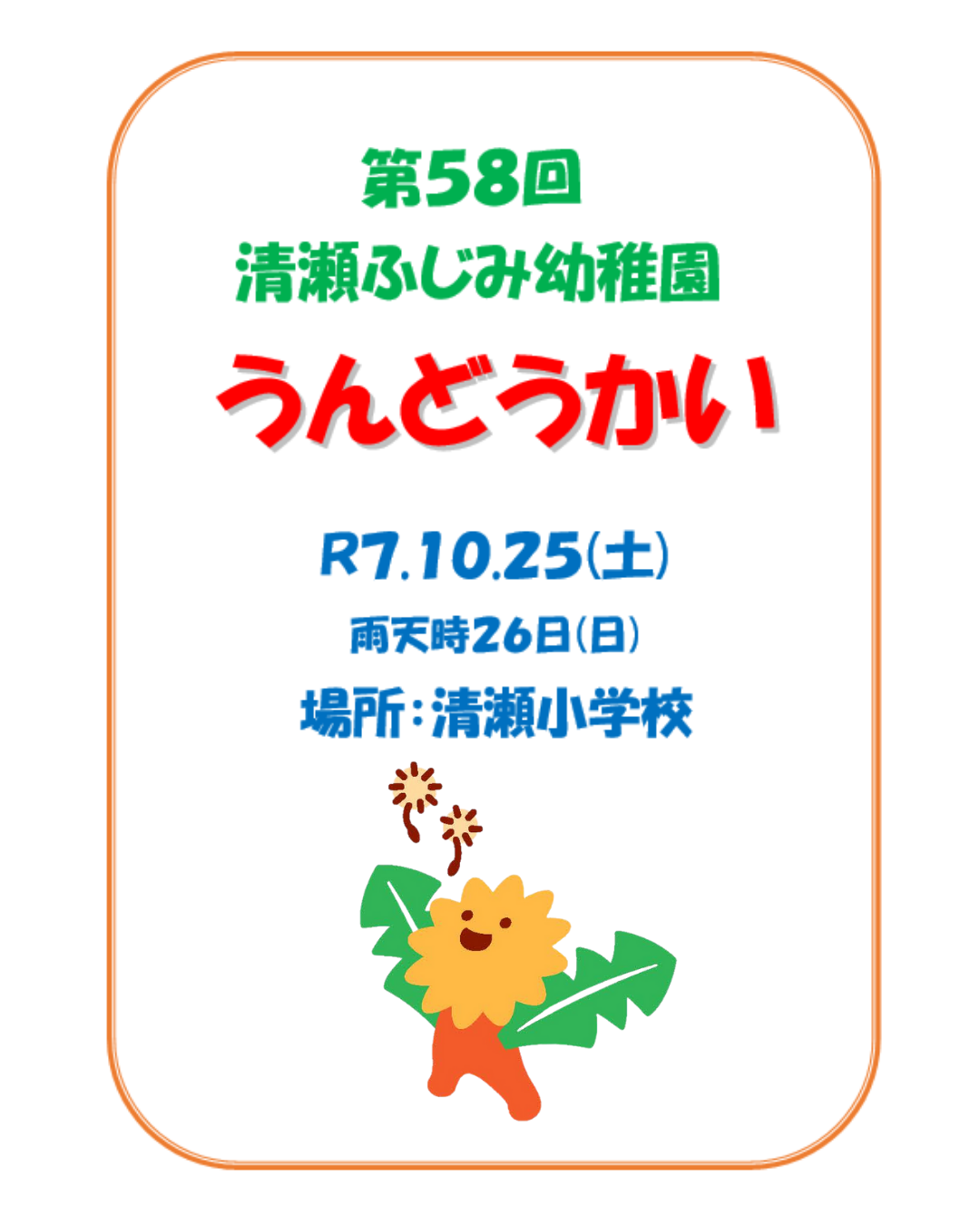 来る10/25(土)清瀬ふじみ幼稚園の運動会が清瀬小学校で開催されます✨
