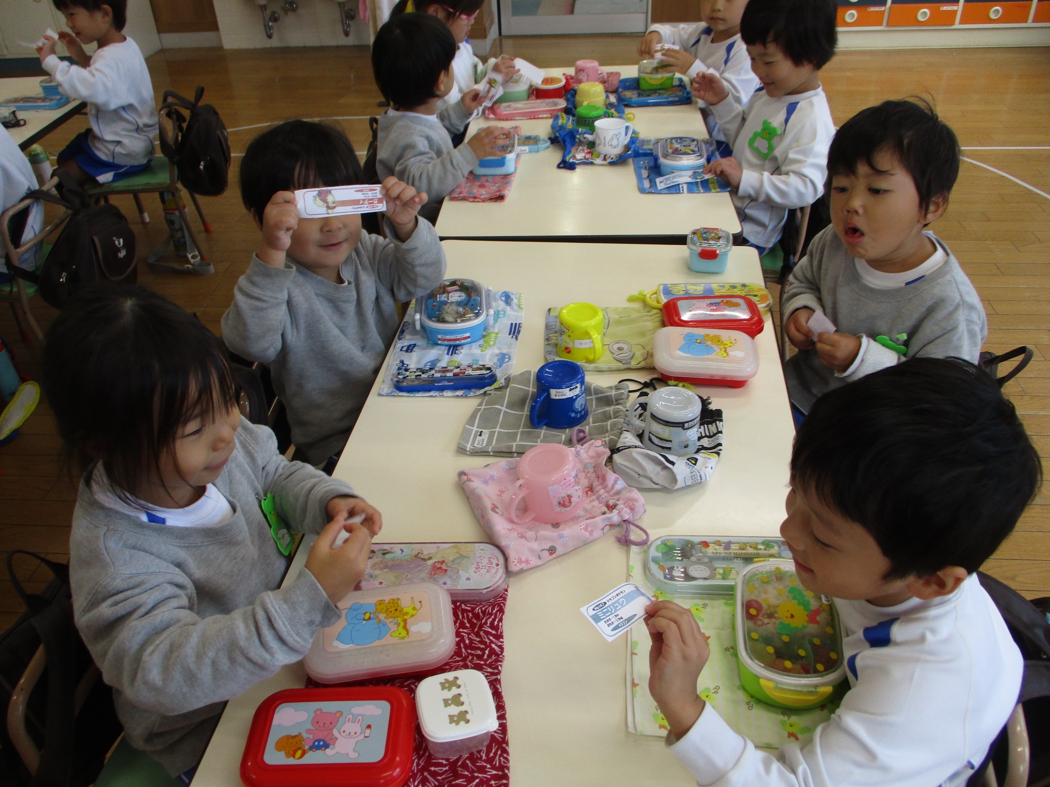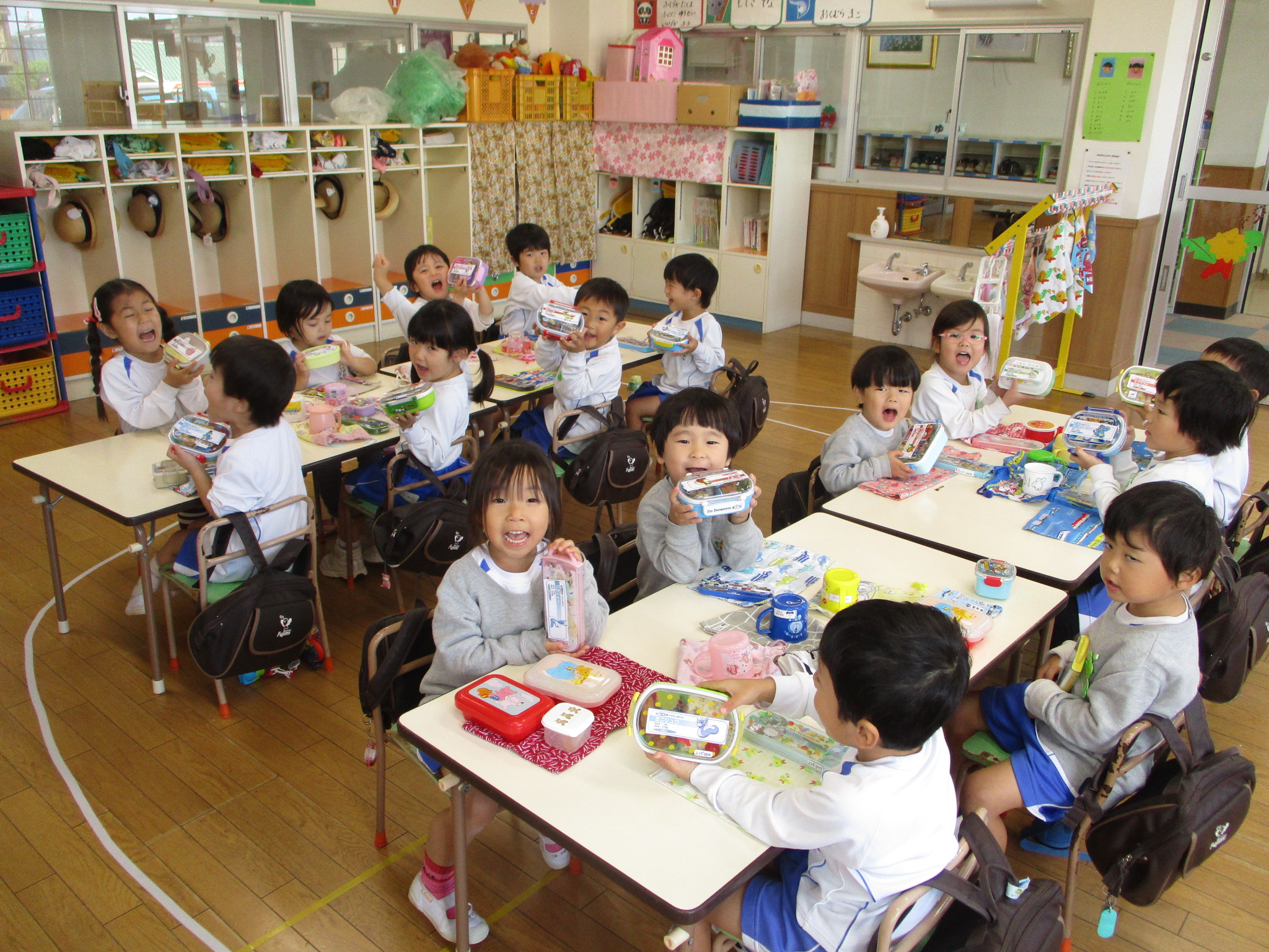 さて、年少組も最後の練習を終え、お昼ご飯の時間になりました。練習を最後まで頑張った子どもたちのお弁当給食に一人一匹のポケモンのプレゼントがありました!