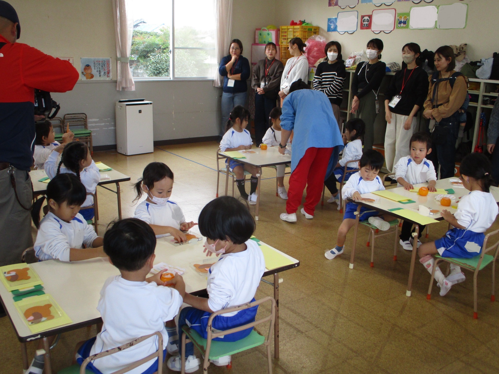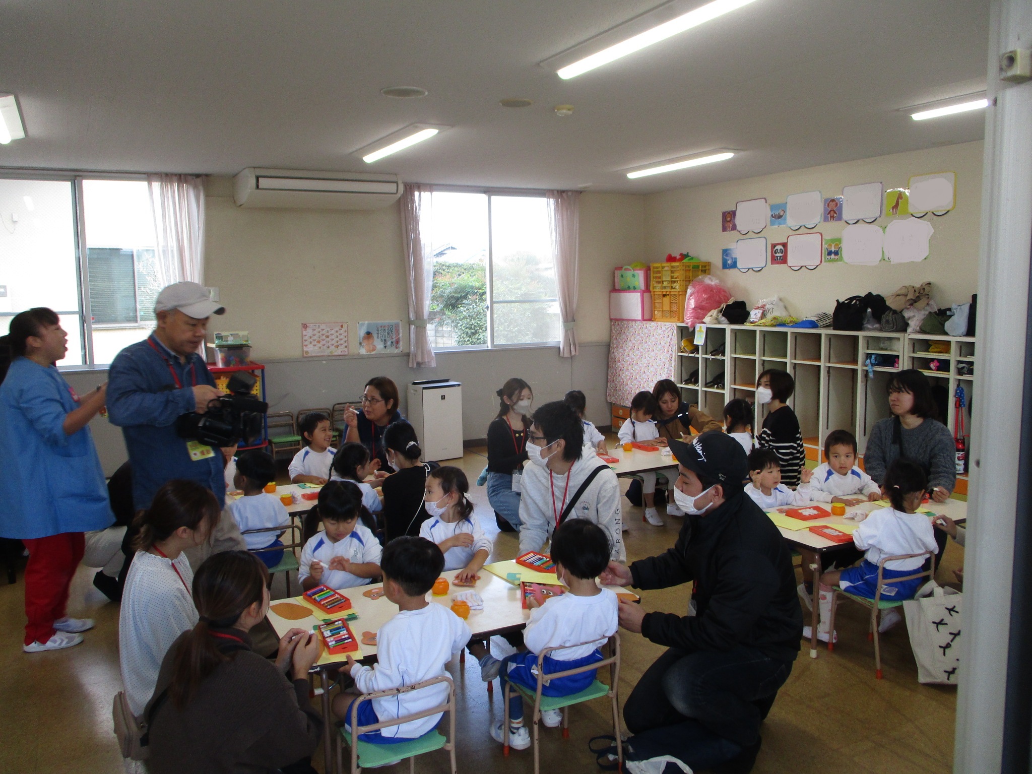 今日は保育参観日。七五三の袋作りを行いました。入園してから、1人でも出来る事が沢山増えた姿をお家の方に見てもらいました。