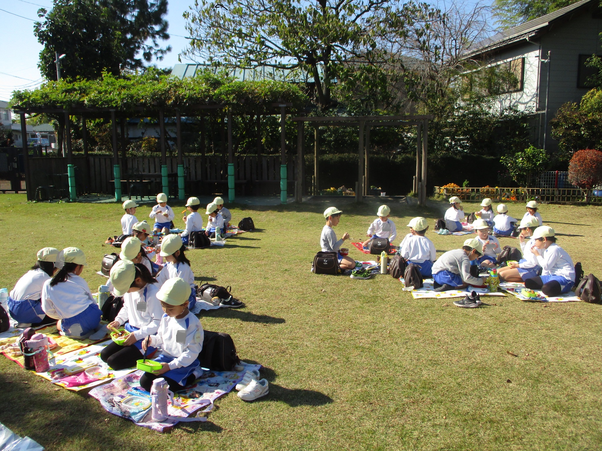 練習を頑張ったあとは、ぽぽちゃん広場でシートを広げピクニックをしながらお昼ご飯を食べました。