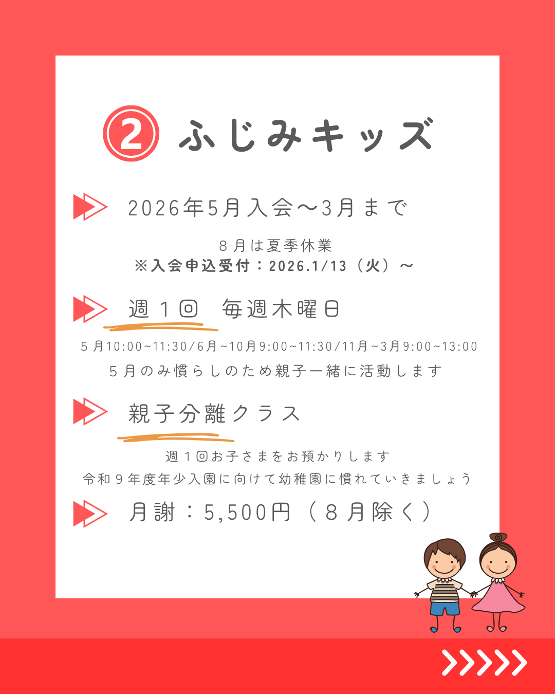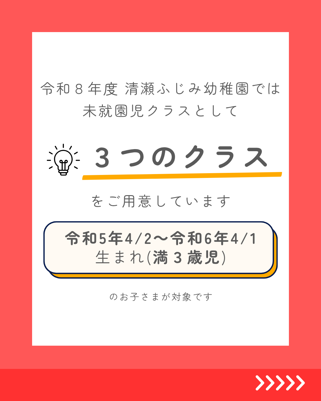 令和5年4/2~令和6年4/1生まれのお子さまが対象のクラスです。