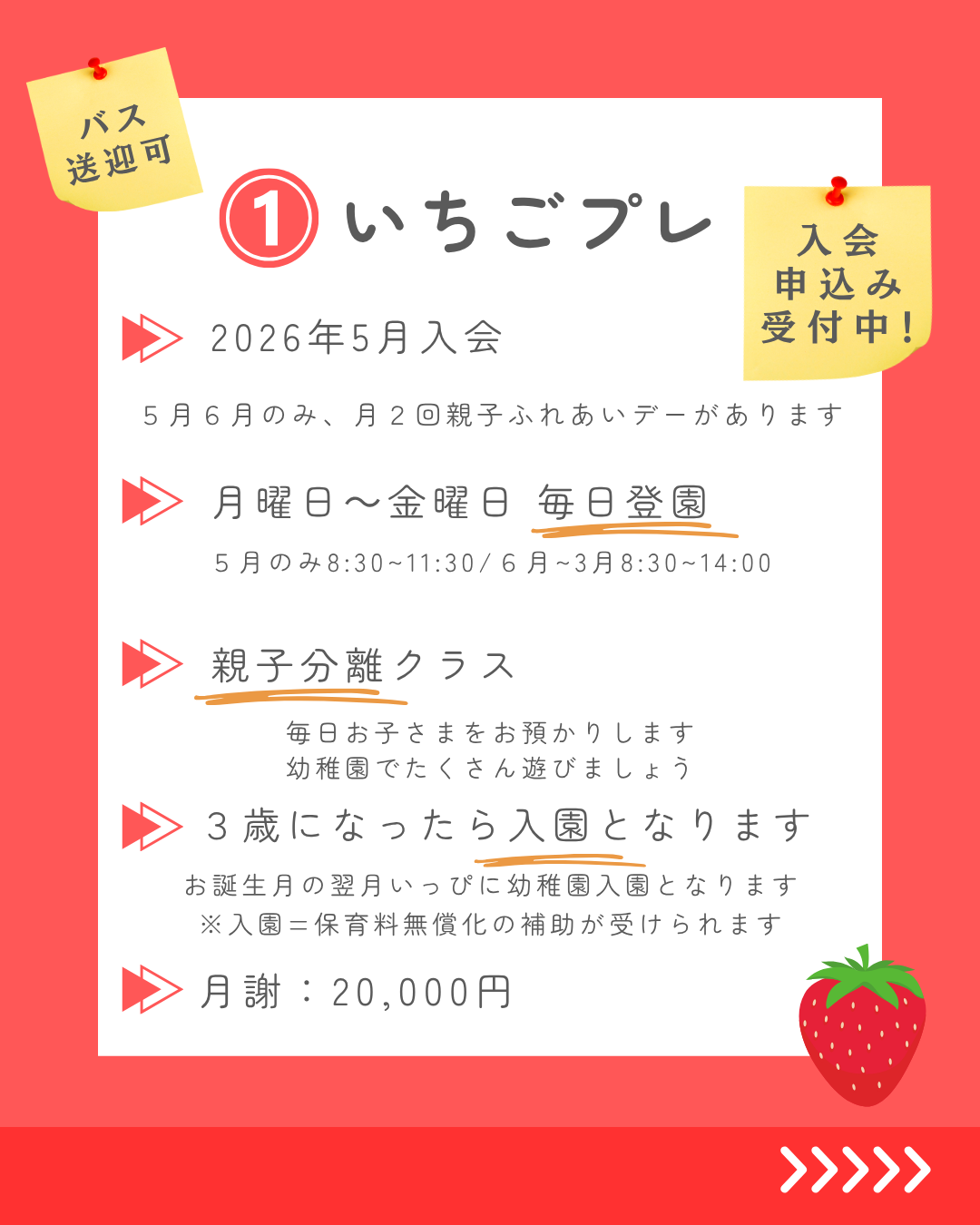 いちごプレ(毎日登園)は、現在入会申し込み受付中です。