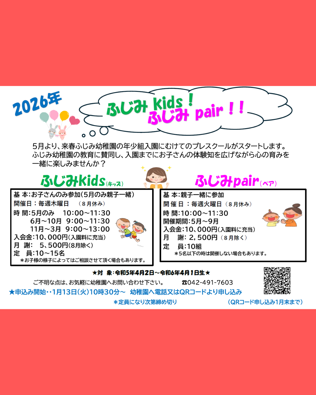 ご希望の方は園見学をお申し込みください。(園へお電話ください)
