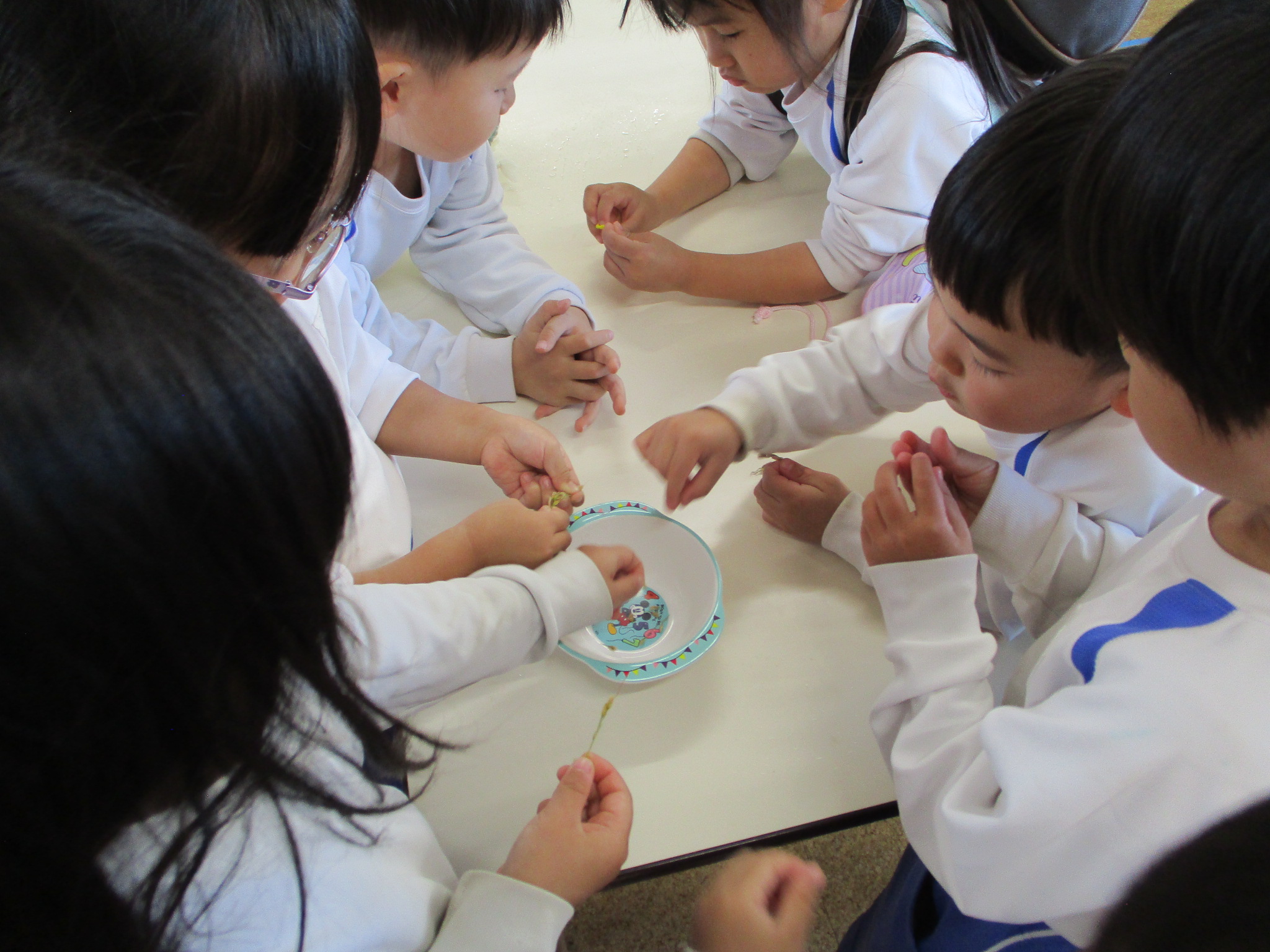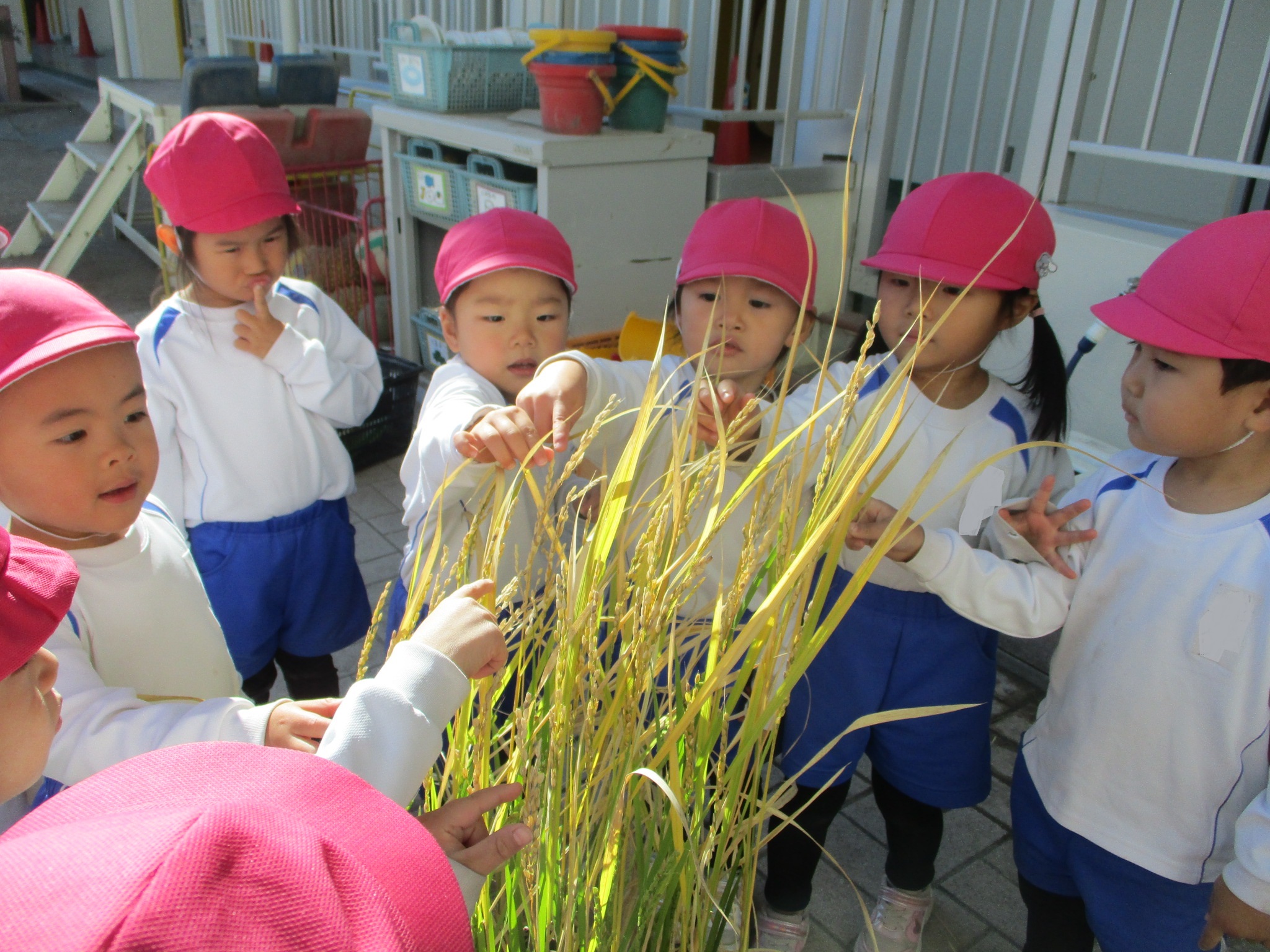 ワクワクしながら取ったお米は一本の稲穂から47粒でした。このお米はさくら組のみんなのお口に入るかな?楽しみです。