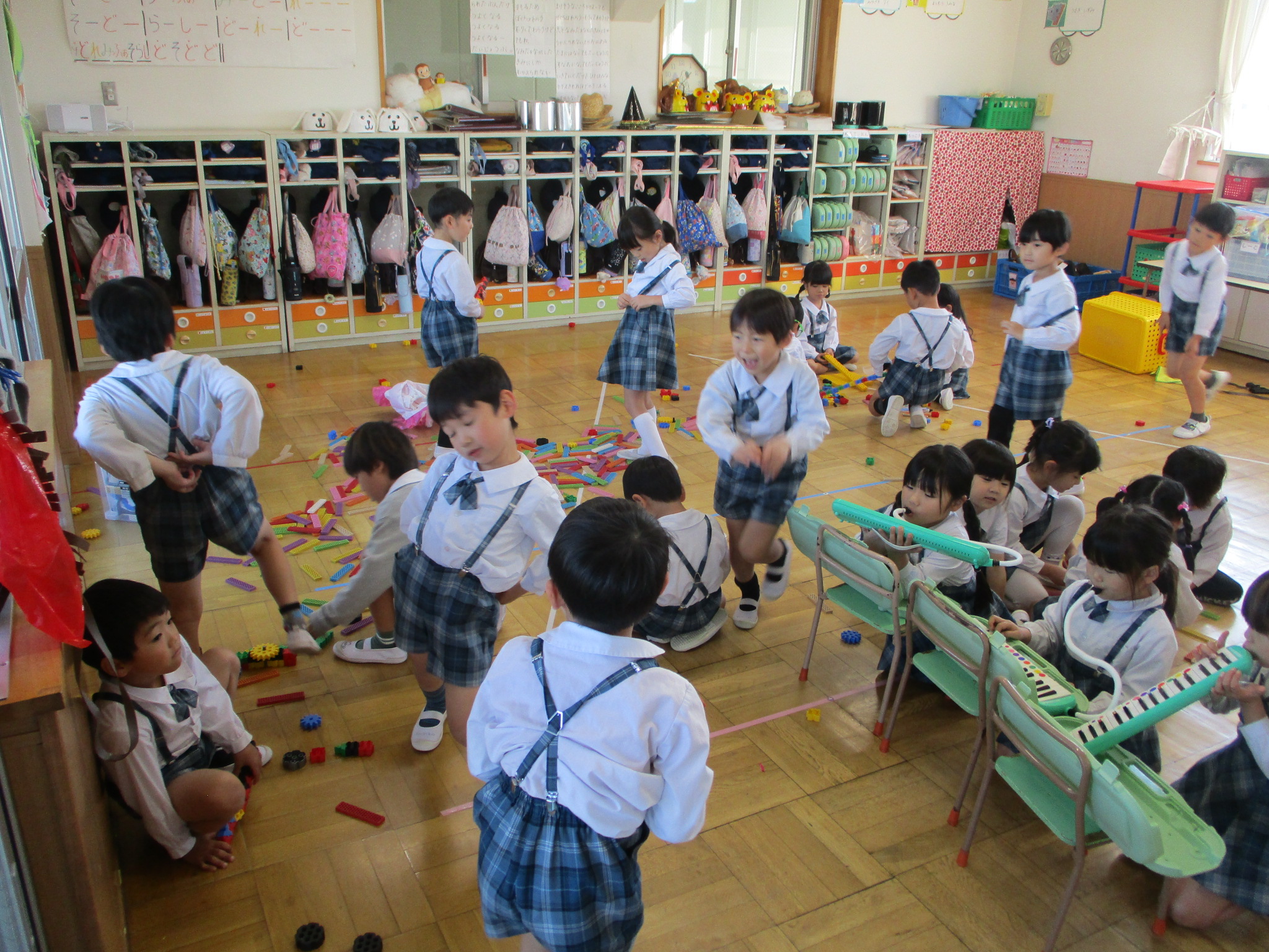 練習を終えると、開放感からおもちゃ箱を思いっきりひっくり返して 楽しむ子どもたち(笑)ONとOFFの切り替えをしながら、本番に向けて頑張っています!