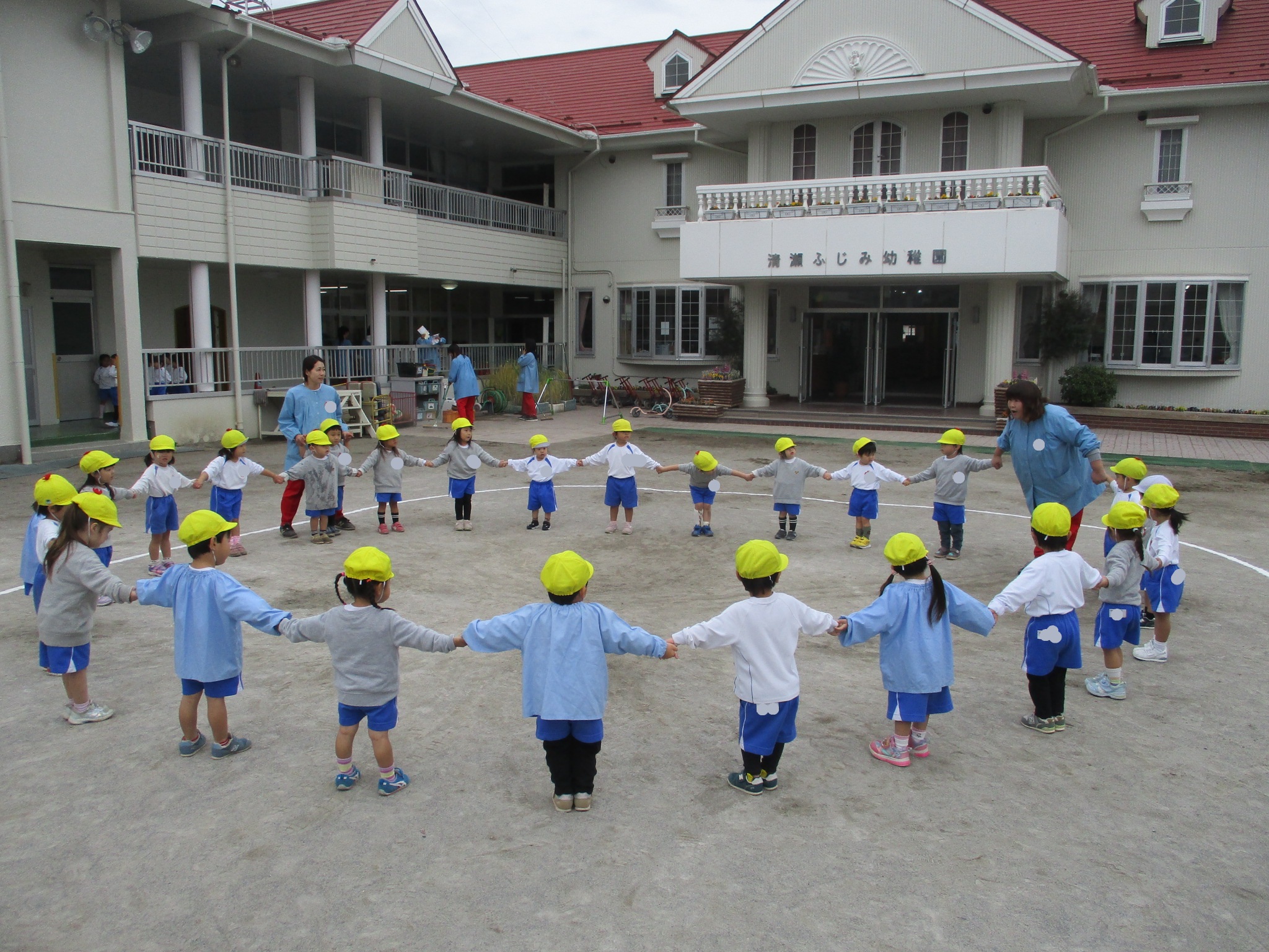〈みんなで手をつないだよ♡大きな円ができました♡〉