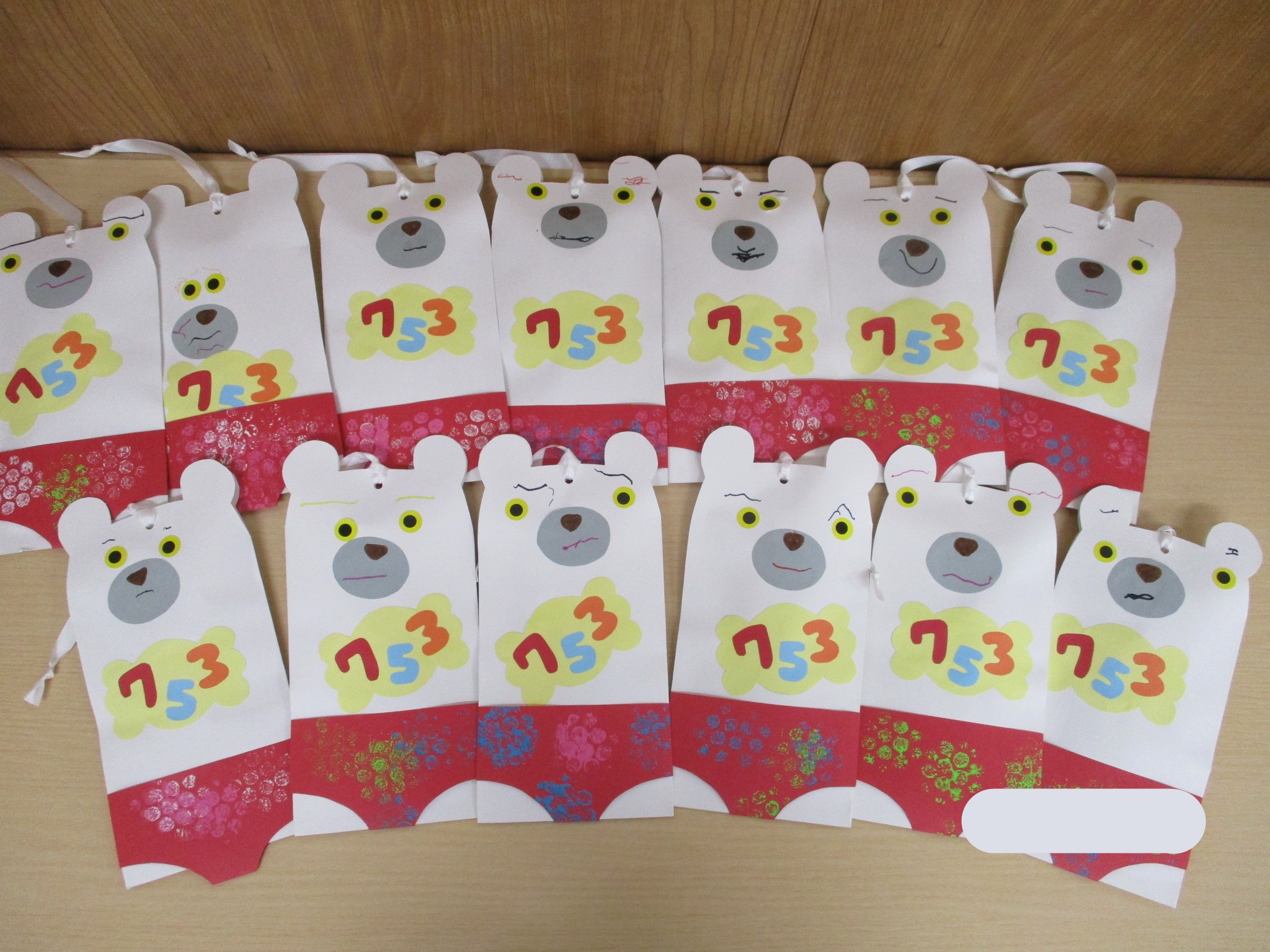 〈七五三の袋製作♪プチプチでスタンプをしたよ!〉