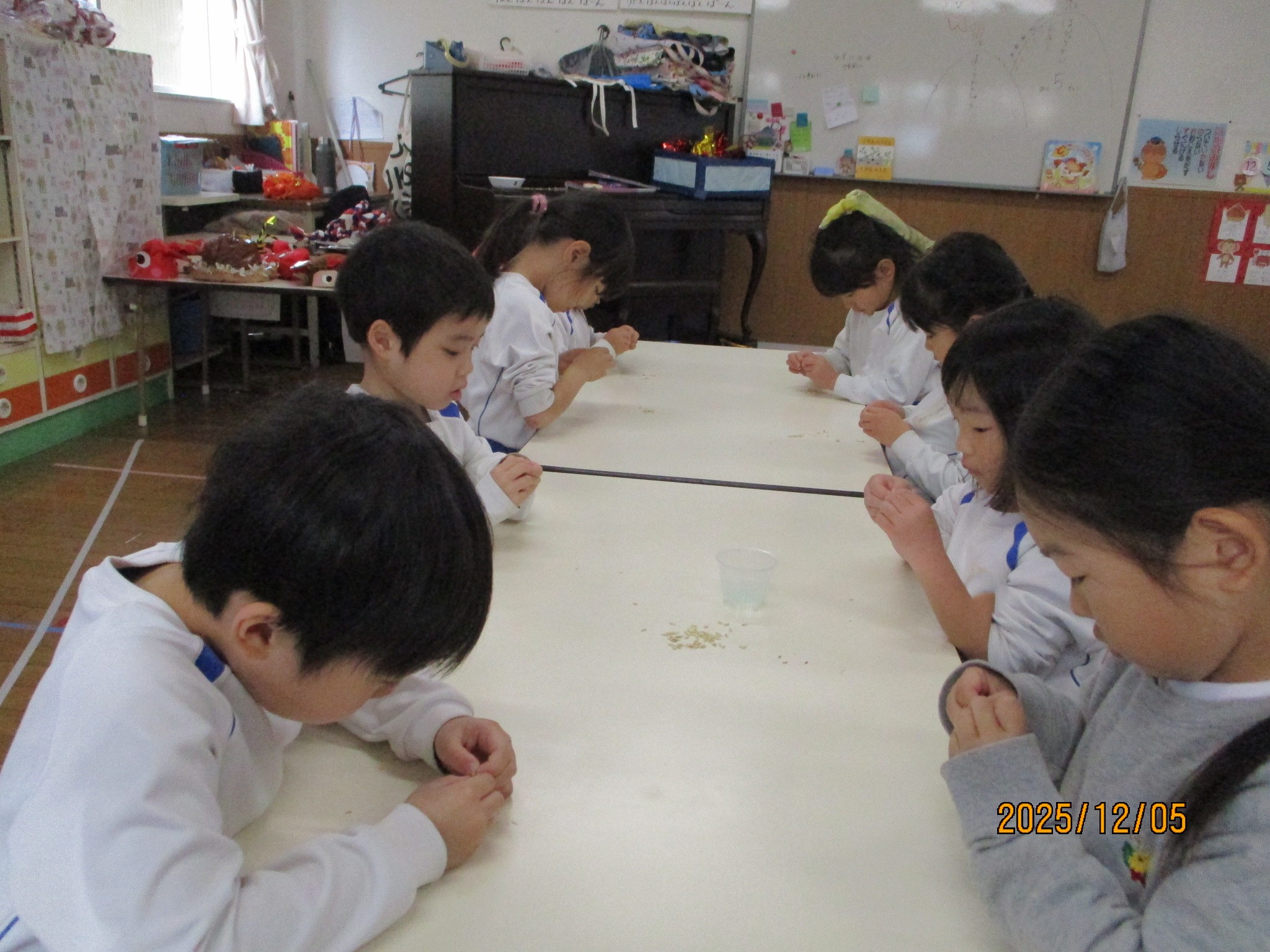 実際に一粒一粒に触れて確かめる経験を通して、当たり前にご飯が食べられることへの感謝の気持ちを子どもたちなりに感じることができた一日になりました。今度はみんなのお米を食べてみようね!