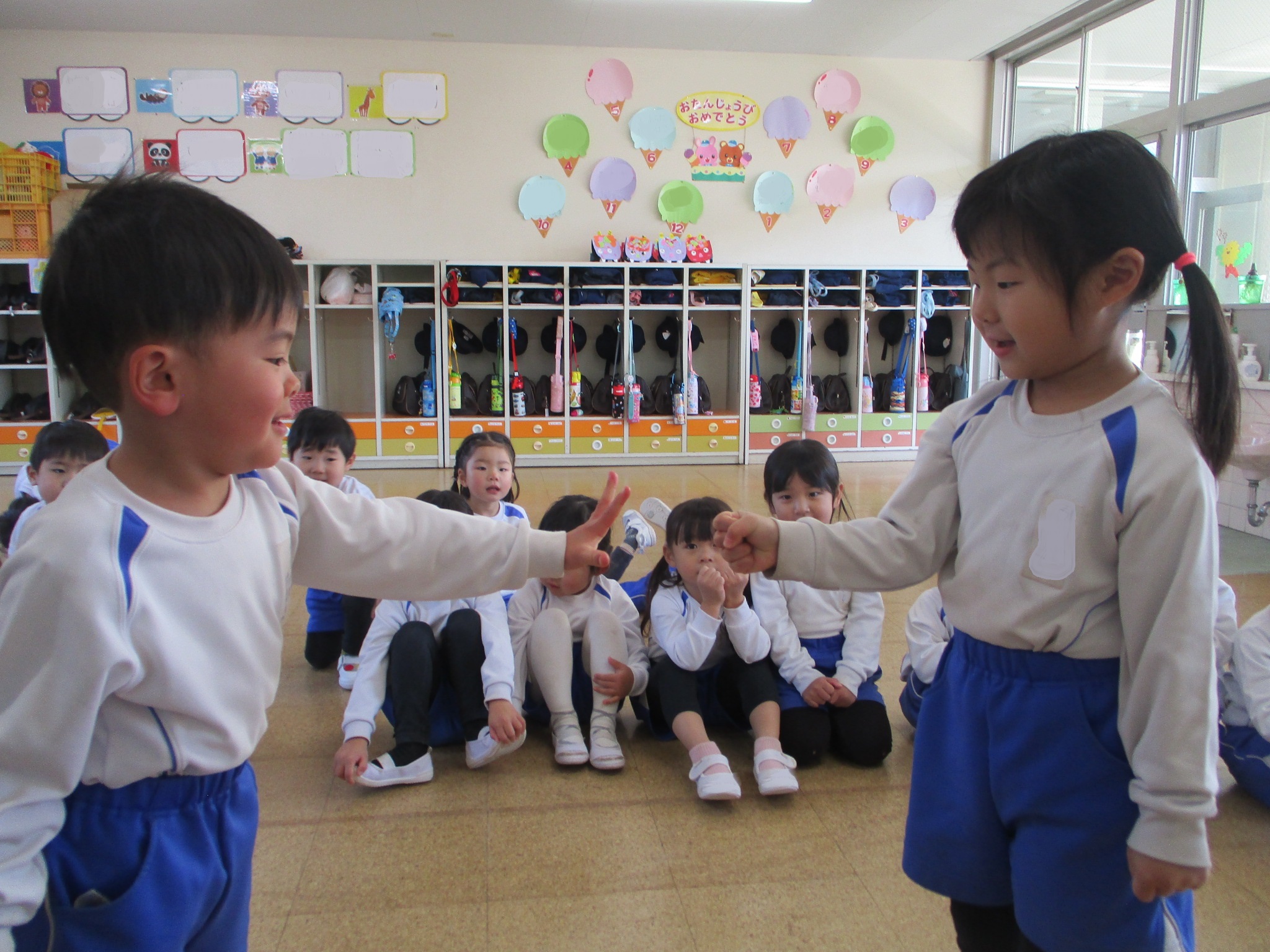 白熱のじゃんけん大会です。遊びの中で始めたじゃんけんを通して、勝ち負けの楽しさを感じています!!明日はさらにパワーアップしてゲームに取り入れて遊びを発展していきたいと思います。どんな反応をしてくれるかな?楽しみです。