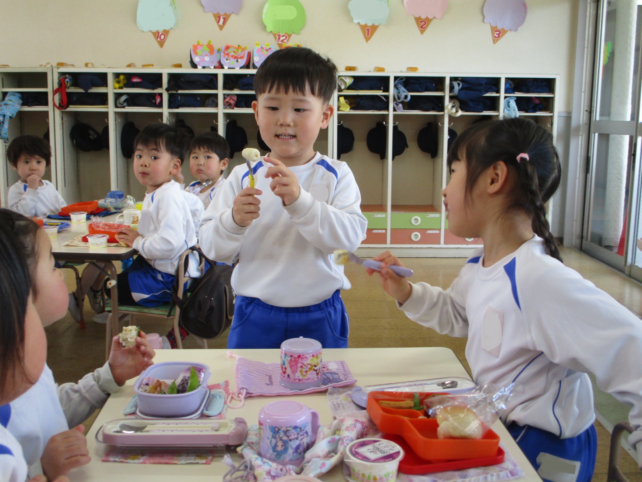 給食のお友だちのちくわを見比べて「こっちのほうが良く焼けていておいしそう!!」なんて可愛らしい声が聞こえてきました。明日はどんな楽しいことが待ってるかな?先生も楽しみに待ってるね!!