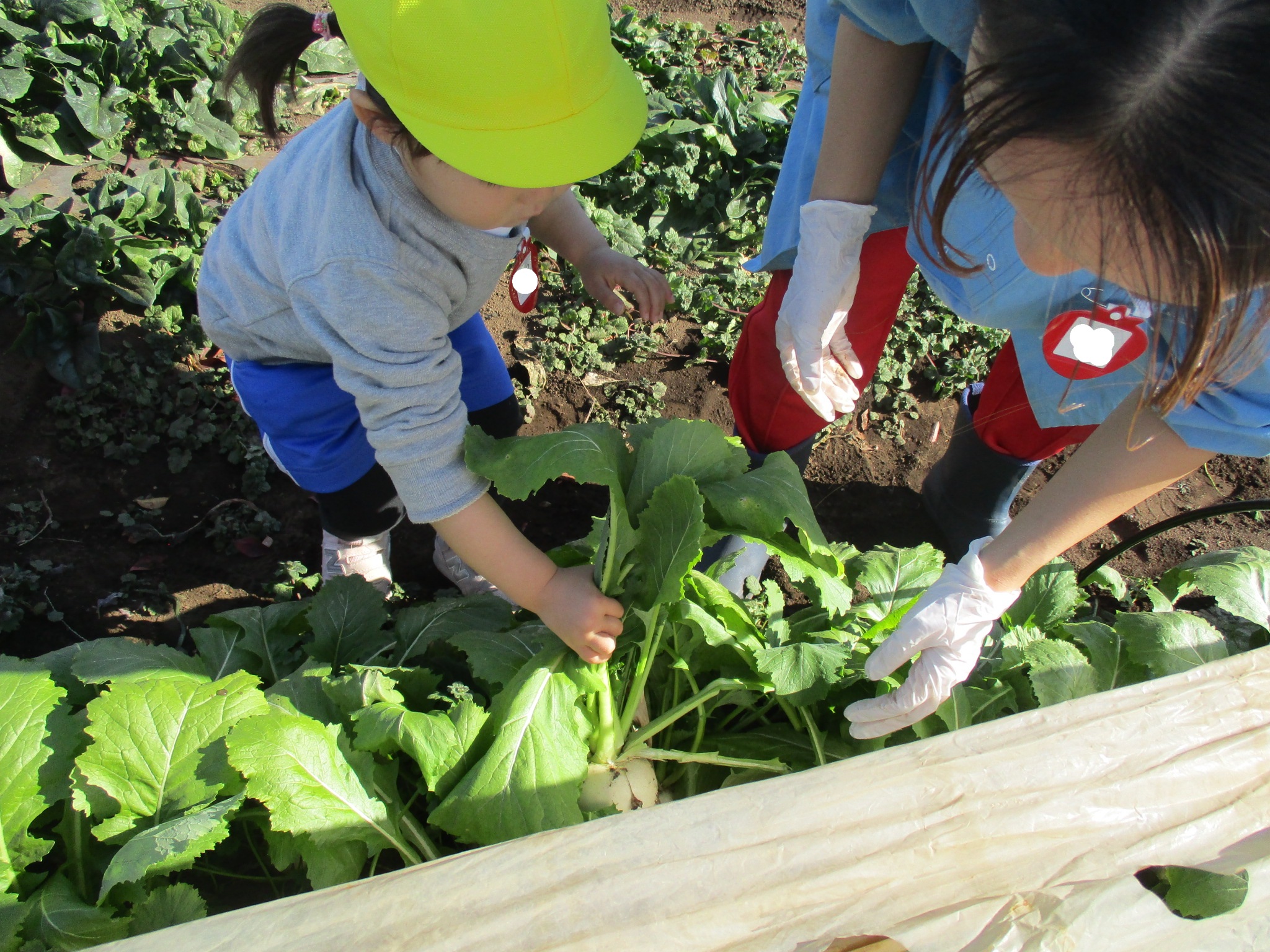 時には園庭のきんかんや畑のにんじんを食べてパワーチャージ☆1学期から畑の物を何でも食べてみよう!とする気持ちが、今の「やってみよう!」のチャレンジ精神や受け入れる力に繋がっているように感じます。
