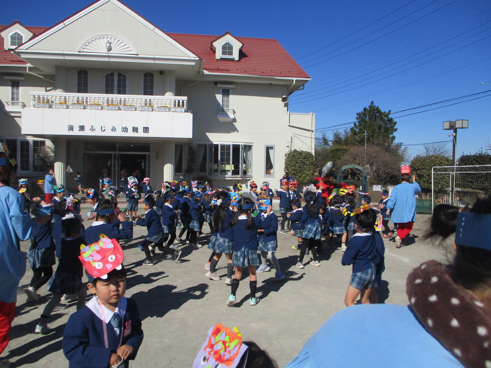 最後は福の神と一緒にみんなの心の鬼も追い払いました。ふじみ幼稚園にも「鬼は外!!、福は内!!」とみんな大きな声で願いをこめて豆まきをしました。