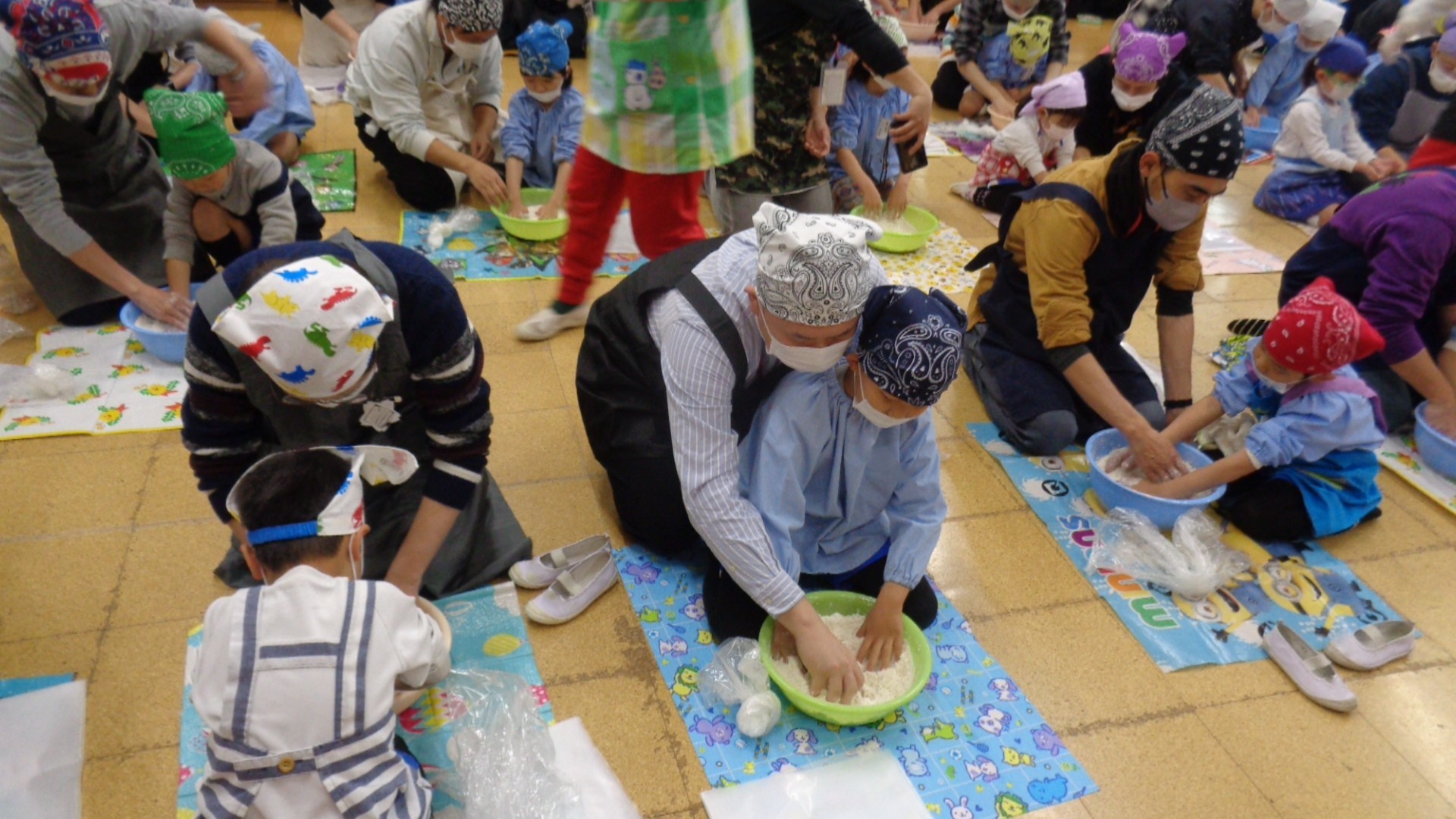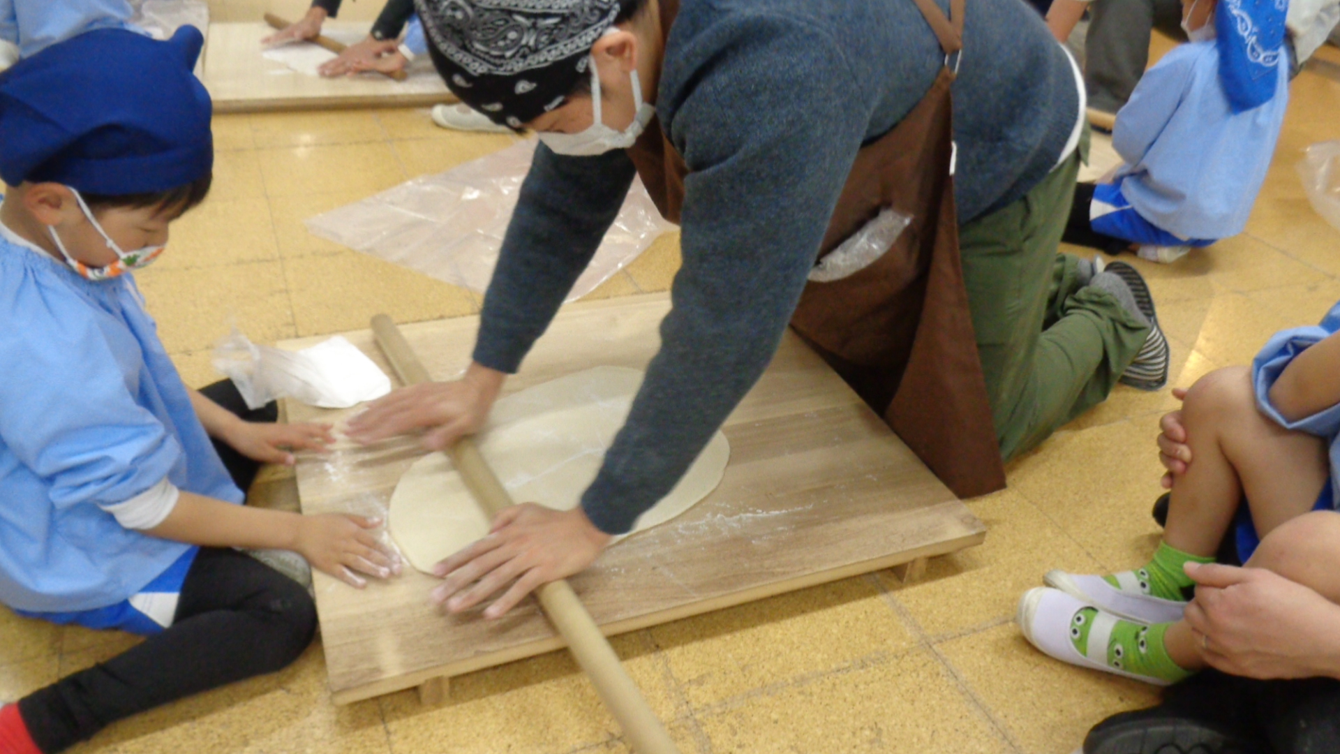 今日は年長組のおやじの会でうどん作りをしました。